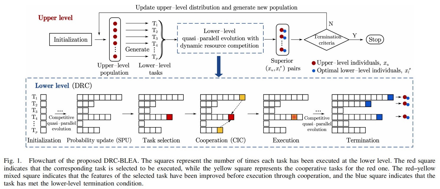 为了克服这一挑战,本文提出了一种用于进化双层优化的高效动态资源分配框架,称为DRC-BLEA。与现有方法相比,DRC-BLEA引入了一种新的竞争性准并行范式,其中来自不同上层个体的多个下层优化任务竞争资源。持续更新的选择概率用于优先考虑有前景的任务的执行机会。此外,在竞争框架内整合了一个合作机制,以进一步提高效率,防止过早收敛。实验结果与最先进算法进行了比较,证明了所提出方法的有效性。DRC-BLEA在不同的问题集和现实世界场景中实现了具有竞争力的准确性,同时显著减少了功能评估的数量和整体运行时间。